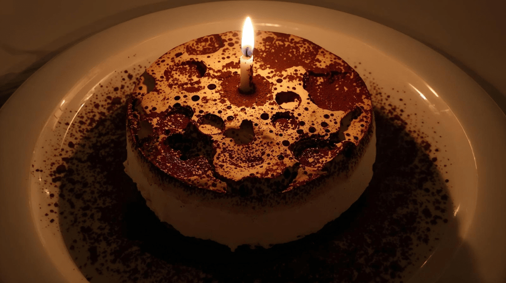 - Dust cocoa on top, press spoon gently to create “moon craters.”