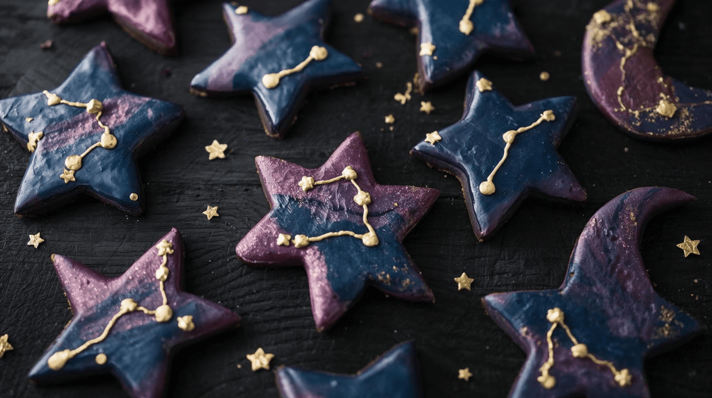 Midnight-blue cookies sprinkled with edible gold dust and tiny sugar stars. These dreamy bites look like Van Gogh painted them with sugar—perfect for stargazing nights with a cup of tea.