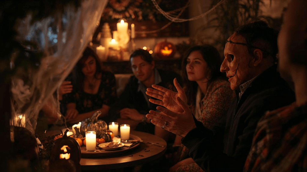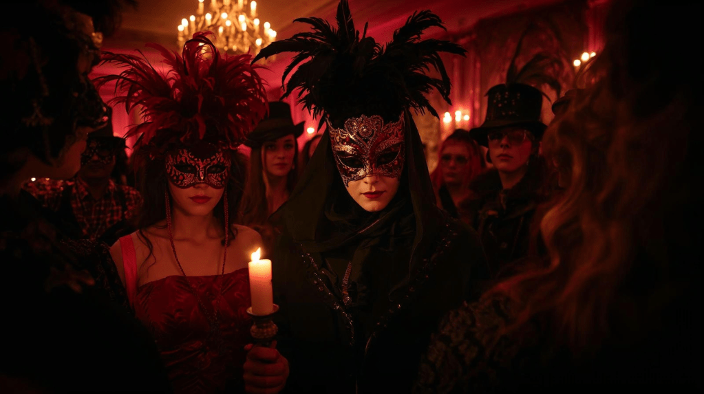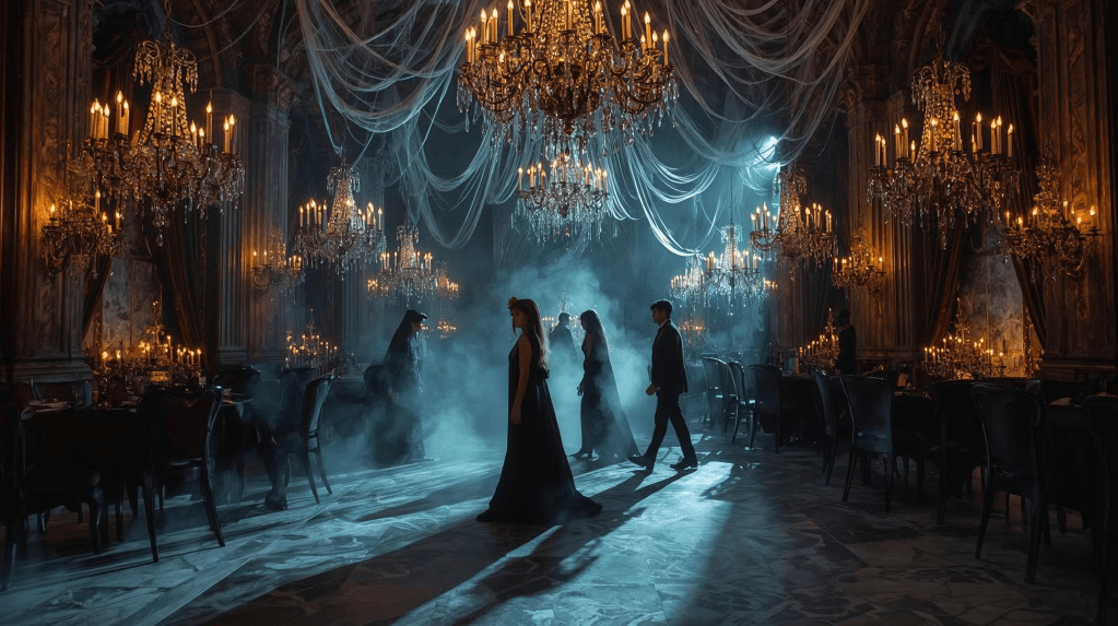 A haunted masquerade mixes elegance with terror â think grand Gothic vibes, masks that hide faces, and moving shadows that make everyone question: was that a guest or a ghost?