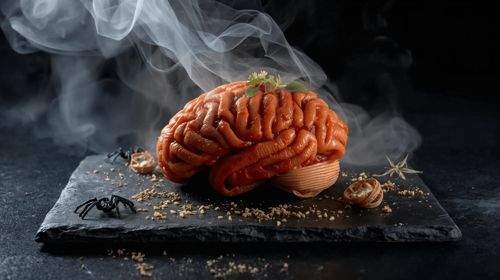 - For extra horror, add a small amount of squid ink to create dark veins in the “brain.”