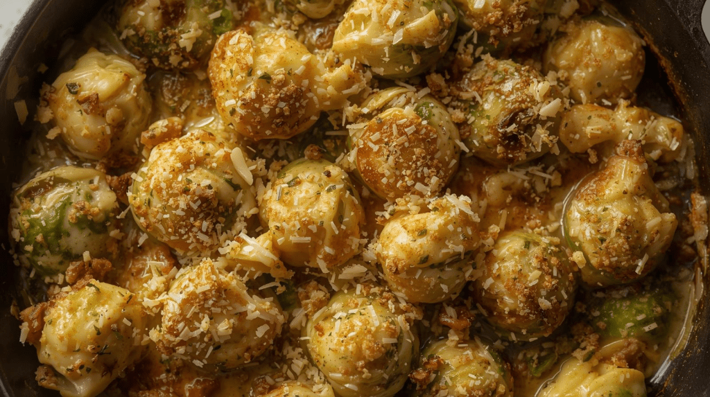 2. 🥬 Creamy Garlic Parmesan Brussels Sprouts