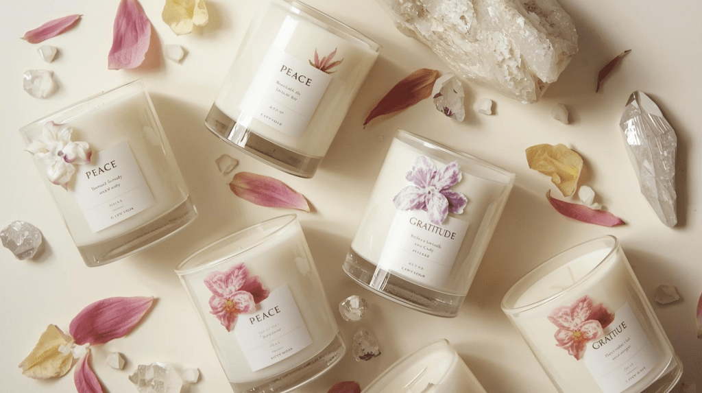 - Add crystal chips like amethyst or rose quartz for intention candles.