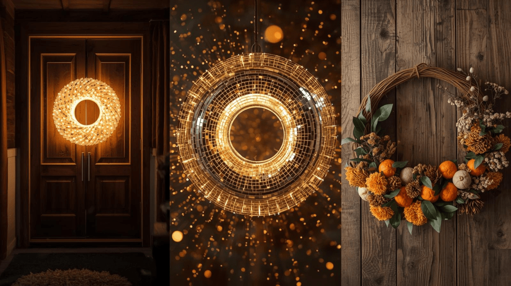 From shimmering disco circles to edible cinnamon spirals, these wreaths are part decor, part statement — and 100% unforgettable.