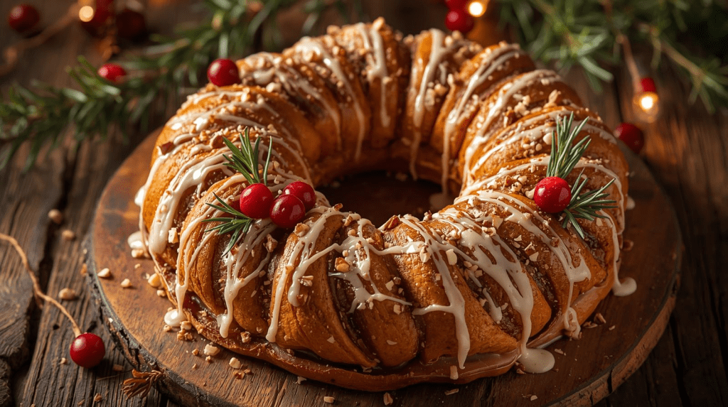 For extra aroma, brush the baked wreath lightly with melted butter and sprinkle a touch of cinnamon sugar.