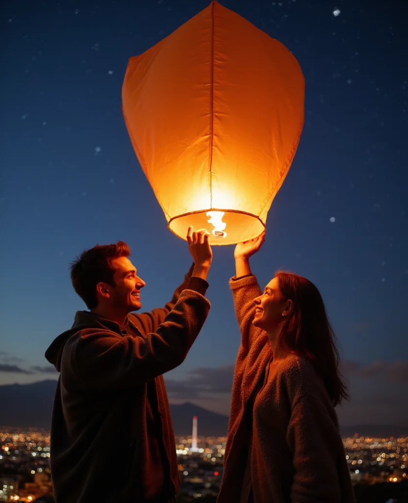 End the night on the balcony or backyard releasing a biodegradable sky lantern with your one big 2026 wish written on it.
